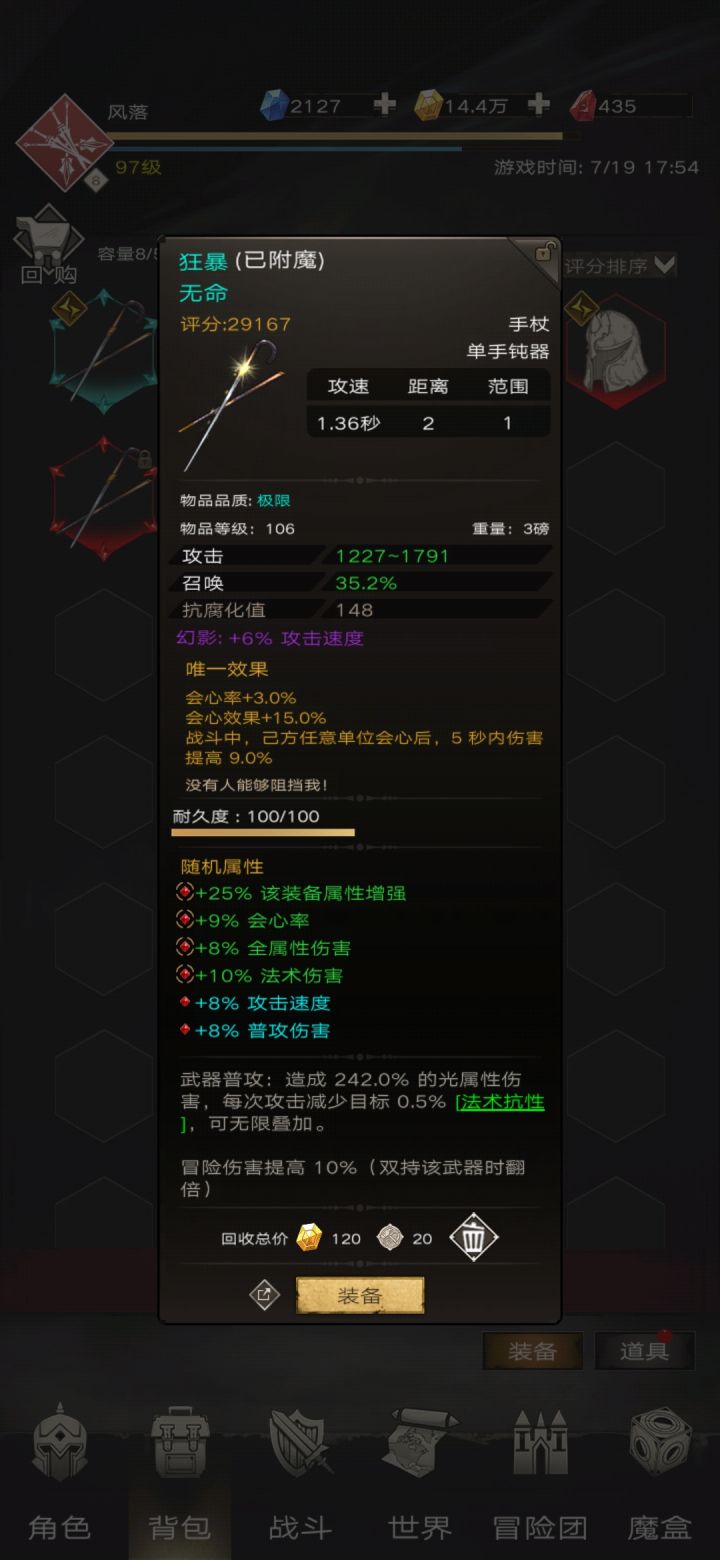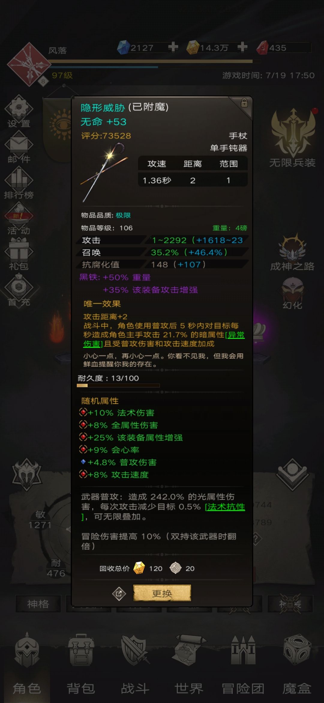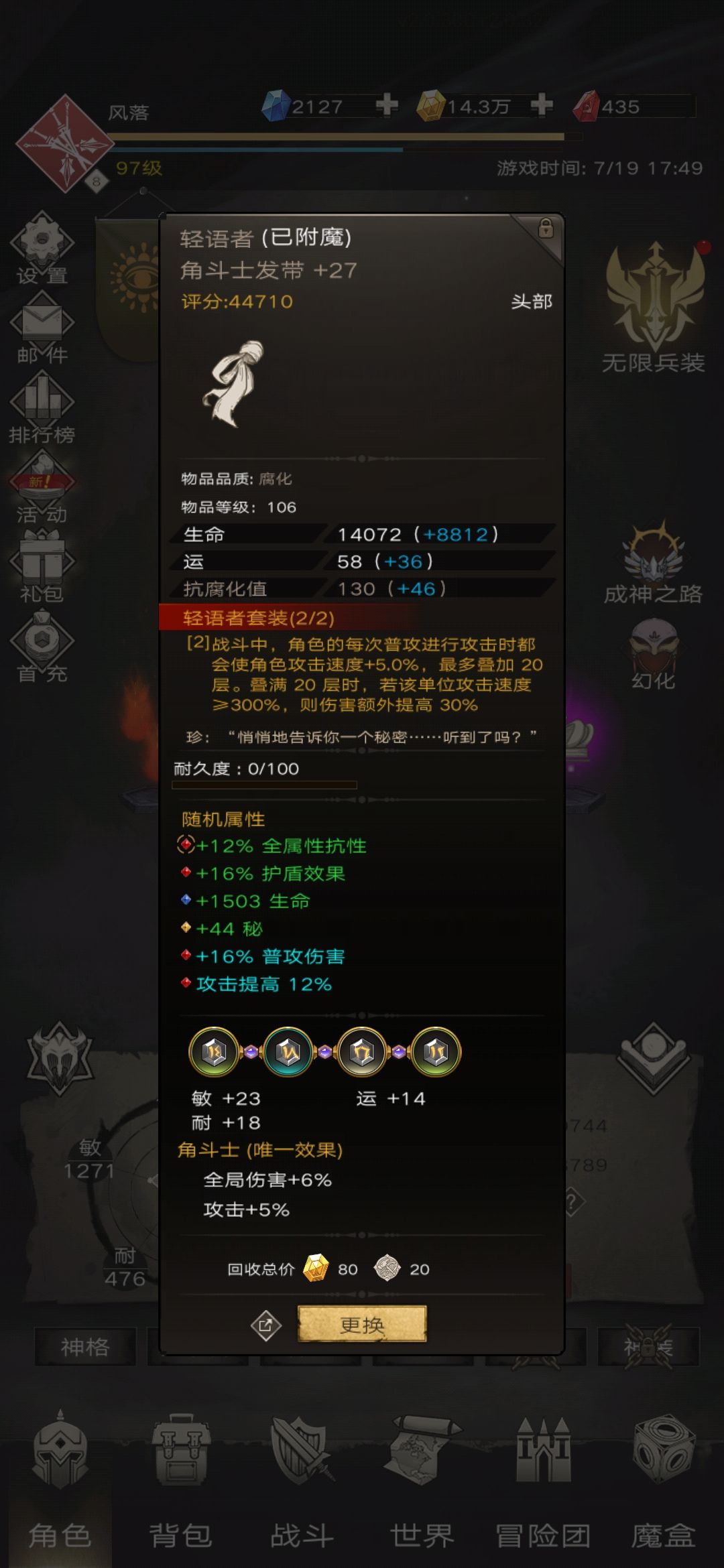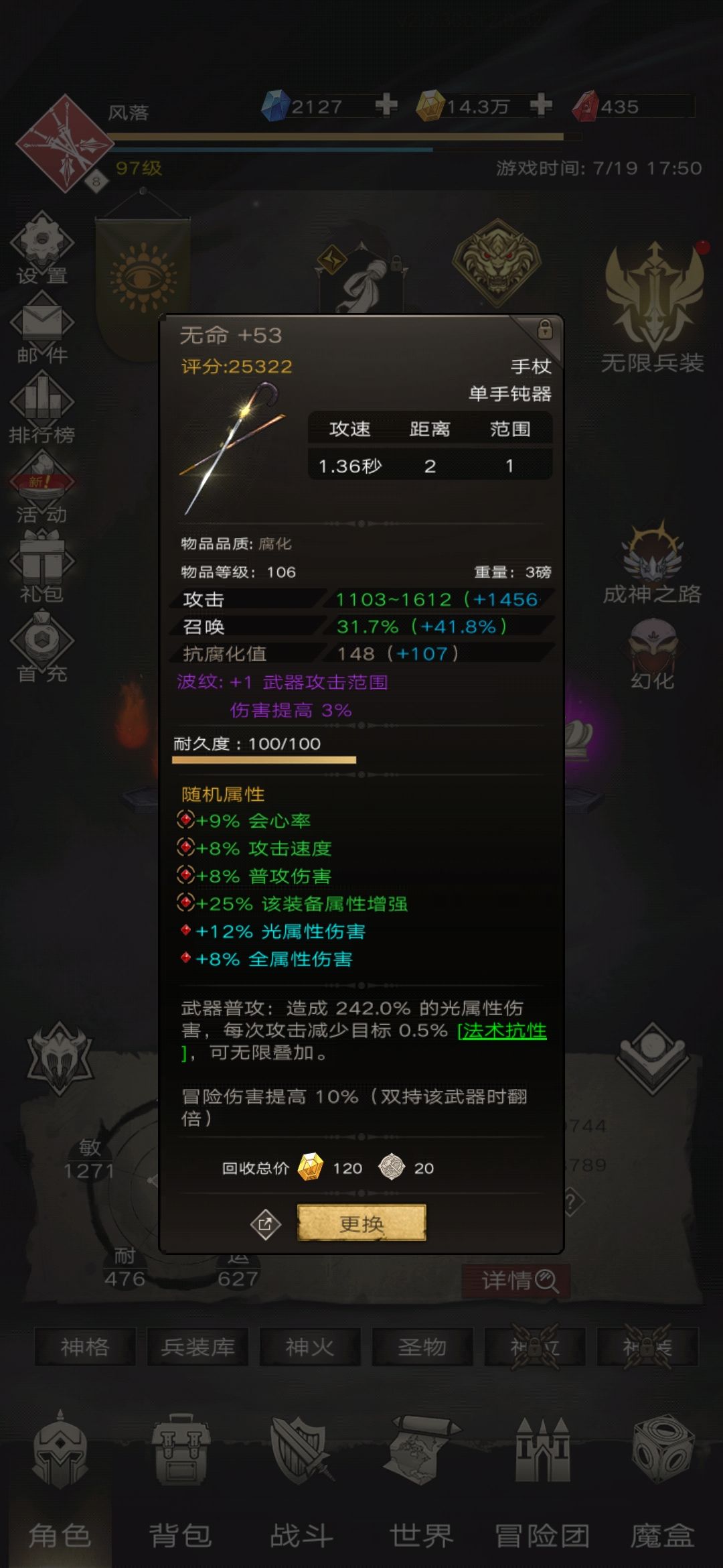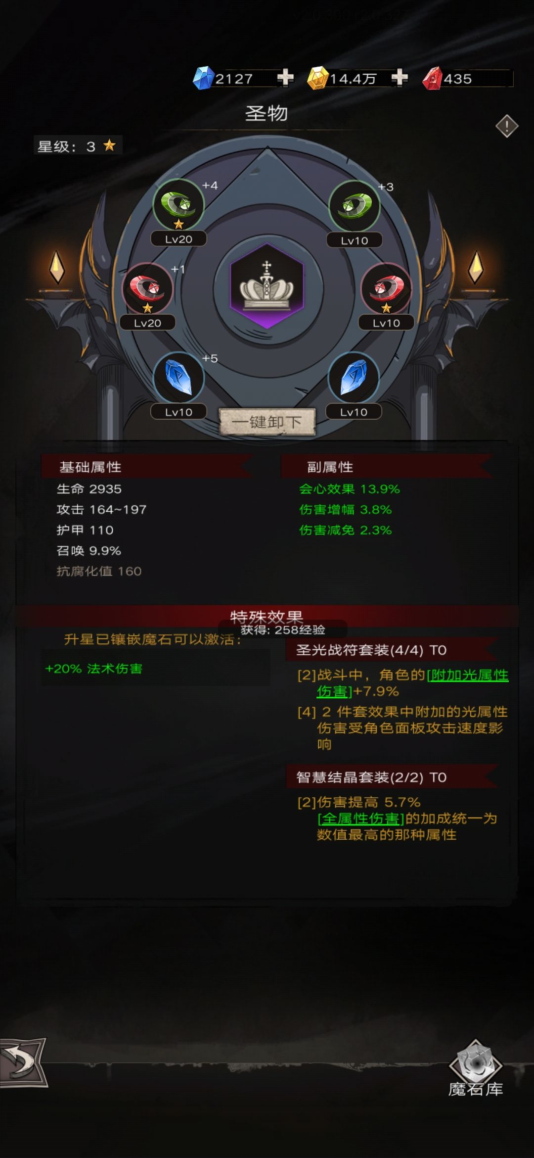圣物换了个红的,不过属性不好,且星级不够,暂时还是用的紫的。