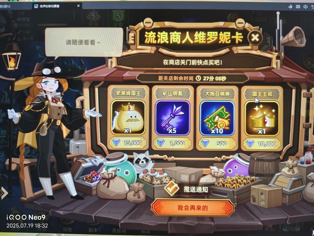 钻石在前期千万不要过度消耗,这个游戏钻石的主要作用就是用来购买要塞已经两个史莱姆本体。两个史莱姆的本体都会概率在流浪商人处刷新,国王在第四阶段商人,皇后在第五阶段商人。钻石要塞皮肤再最开始是没有的,需要你开启金色品质的大炮或者修理工零件时才会出现。