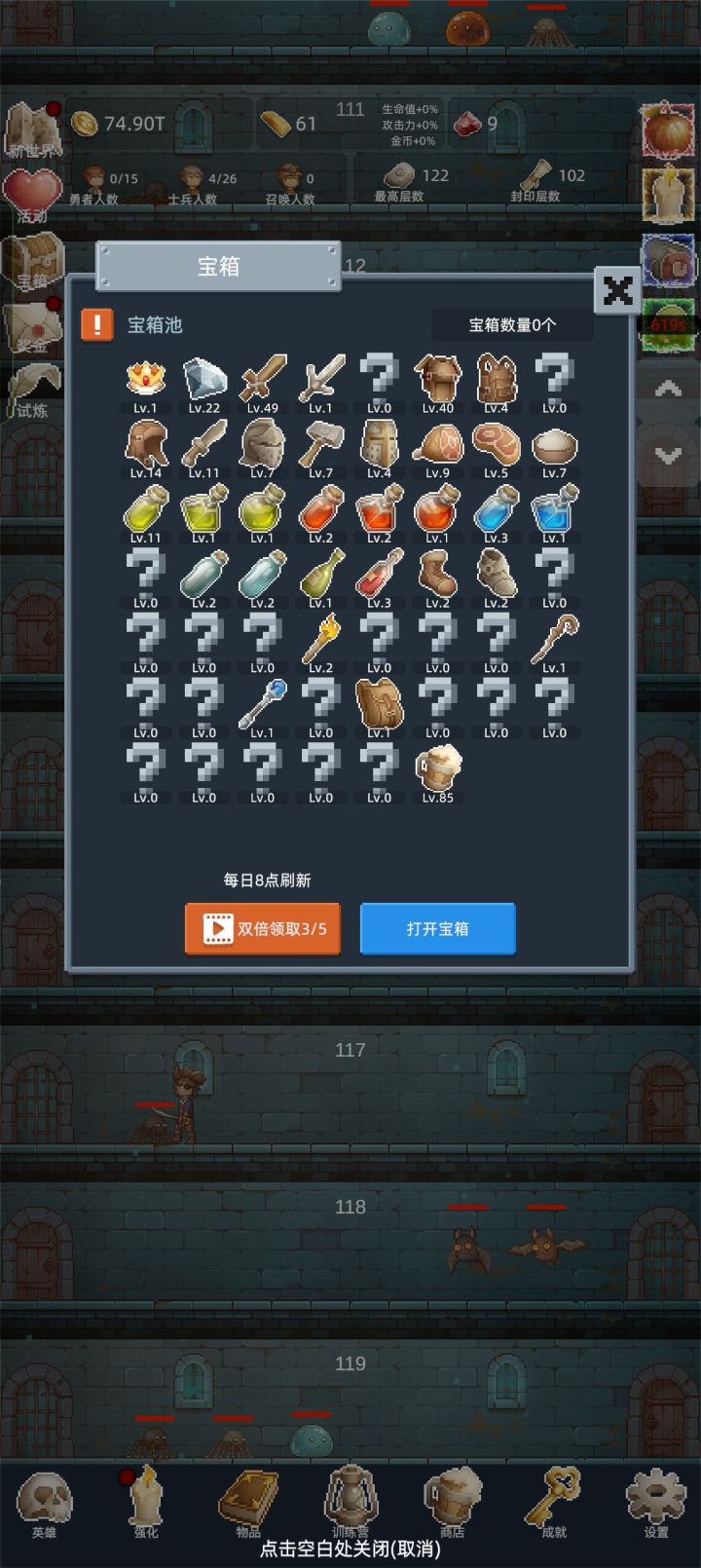 游戏里爬到100层能解锁轮回转生,可以获得永久加成,从1层重新开始爬塔。