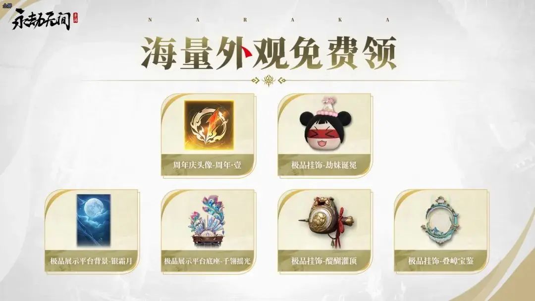 不仅如此,周年庆还为大家准备了生日帽和专属头像。除此之外,还有众多极品外观,统统免费送给大家!