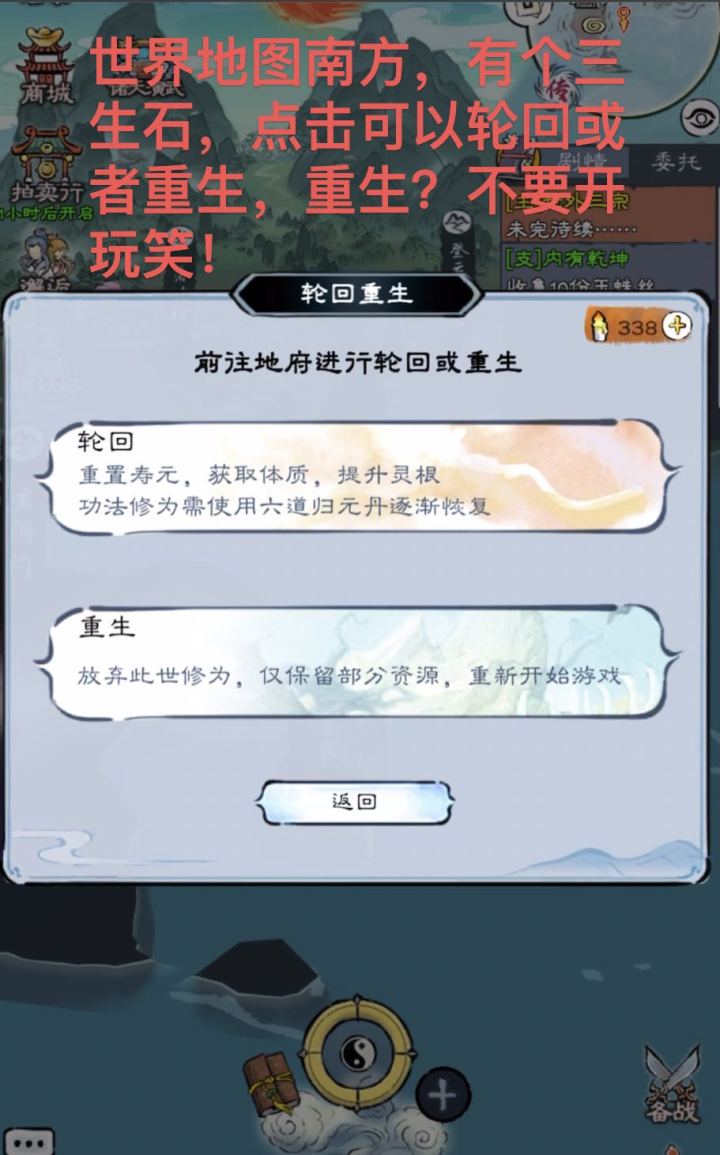 4.重点,轮回前把50毒值的丹药吃满,因为轮回后会清掉毒的。又可以吃50点丹药了。