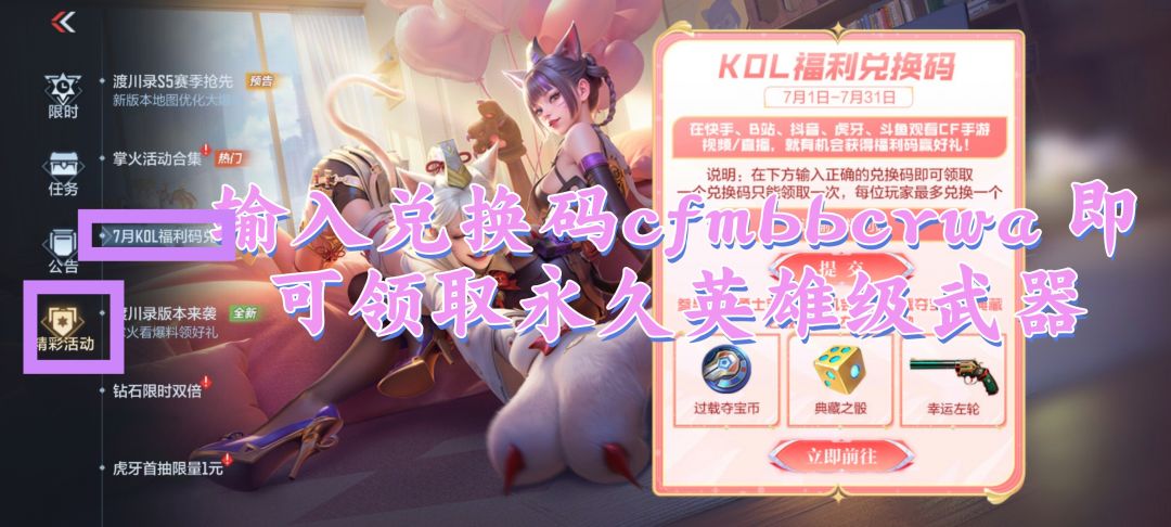 在游戏里输入兑换码:cfm54kuq