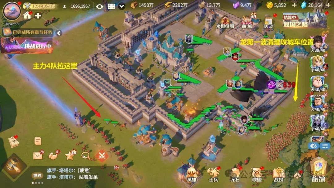1. 主城队伍选择选择清怪快的AOE流派+召唤流,并且需要培养自己英雄池里所有的英雄。最好是全拉到60级上一套基础龙石。(这个很重要)