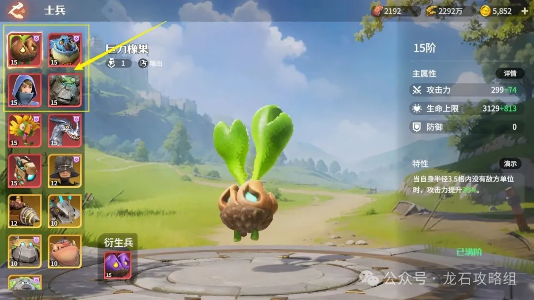 2. 兵种培养拉满橡果+泥人+医疗后勤兵到15阶(大部分人都能满足)
