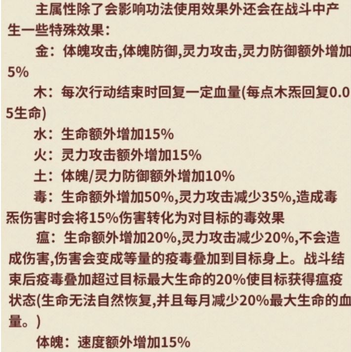 (2)属性组合:当你选择两种灵体并成功组合成新灵体(阴阳冰雷毒瘟等)的情况下,组合后的灵体会覆盖子灵体,锁定主属性为组合灵根,通过修为获取的属性是组合属性,组合比约为3:2。
