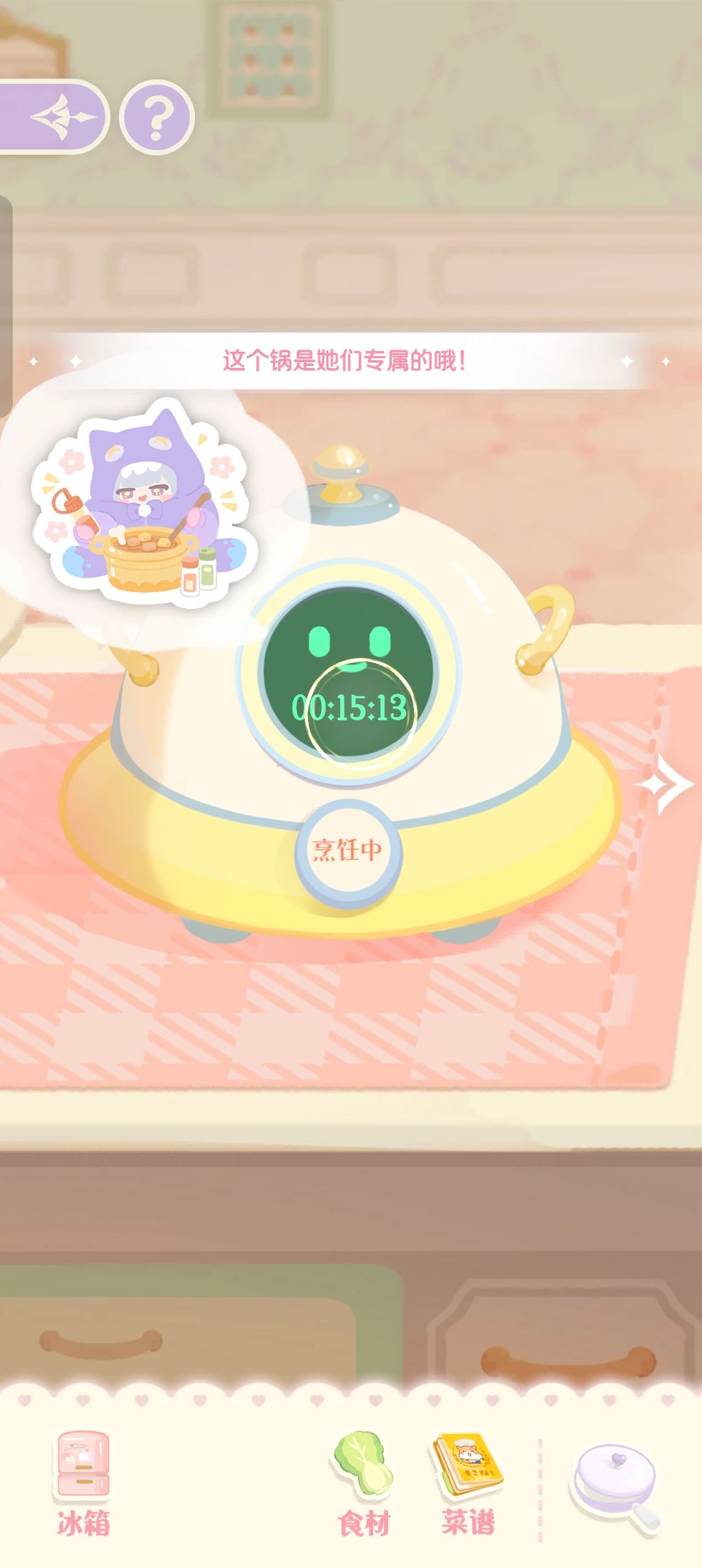 这款游戏的时间完全和现实同步,也就是说你在睡觉,崽崽们也在睡觉。你白天活动,她们也白天活动,值得一提的是每天熬夜上线总能发现夜猫子UNO还没睡,在那里捣鼓她的奇思妙想发明。PaKi和Pea如果没在床上,看见我上号就会立马往房间跑,一秒入睡。她们让我觉得我真的在养小孩,我给她们放在衣柜的衣服和准备好的食物她们都是随心,我无法控制她们换上我想让她们穿的衣服,立马吃我做好的食物。所以很时候做休闲的副游。哦,对了,我还能给她们做吃的,她们也有自己的锅,那口锅我不能碰,那是她们的专属小锅。(UNO超级爱做饭