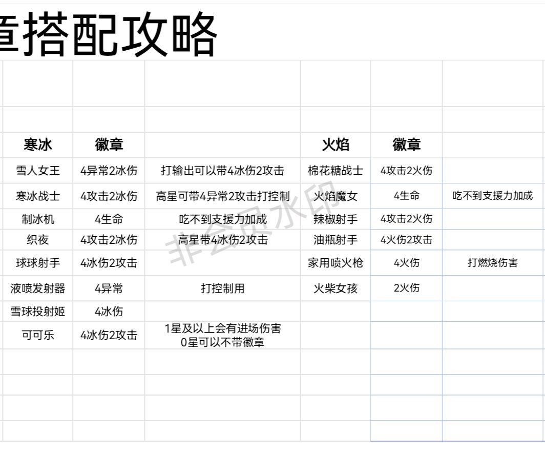 注意:徽章分为生命,攻击,支援三大类,对应格子为五边形,菱形,圆形。各系列徽章不通用,甜品只能给甜品用,梦境只能给梦境用