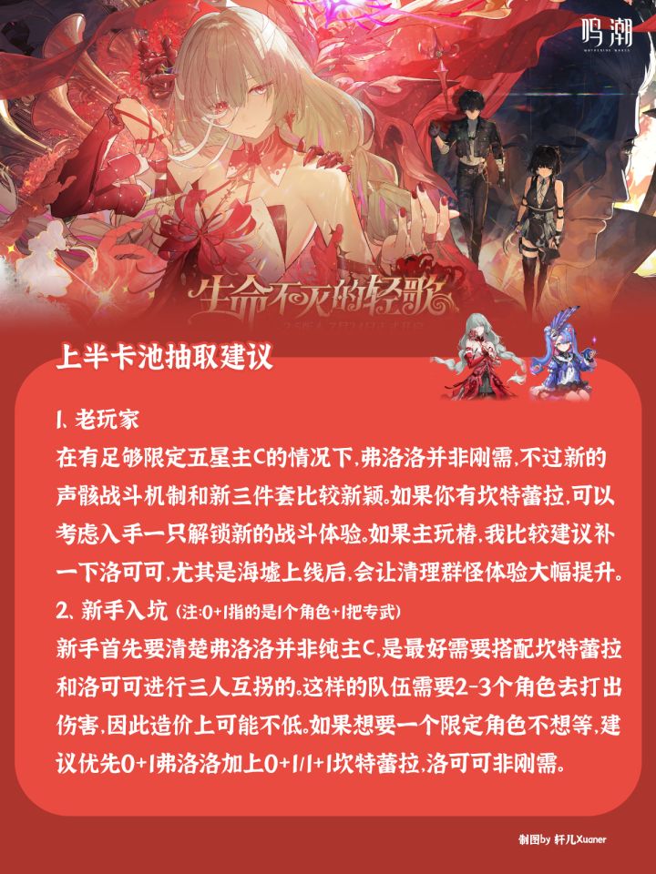 鸣潮2.5版本即将更新,作为一名漂泊时长一年半的老漂,又或是一名新人漂泊者,该如何抽取本期卡池呢?轩儿Xuaner抛砖引玉,提供一些个人见解,仅供参考~