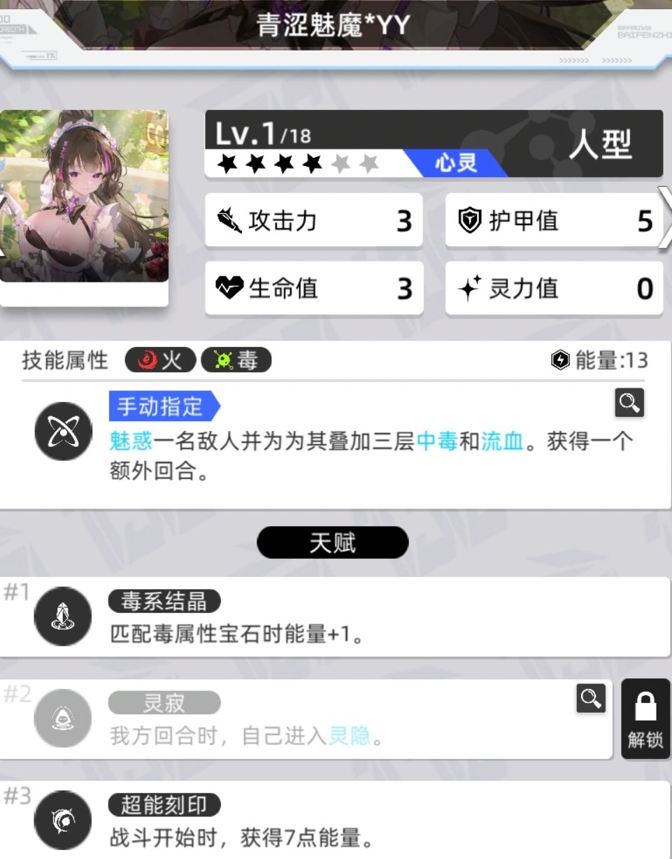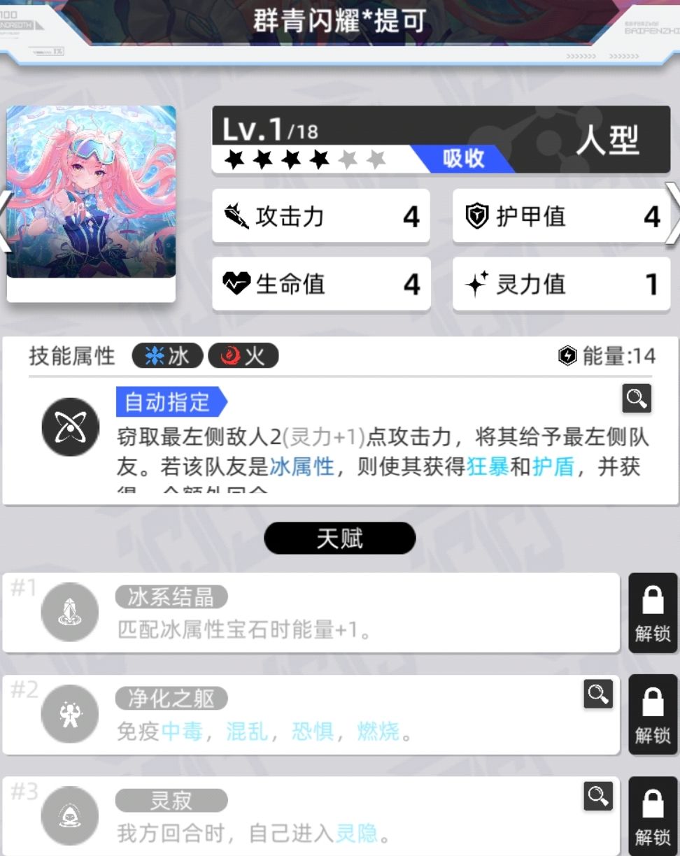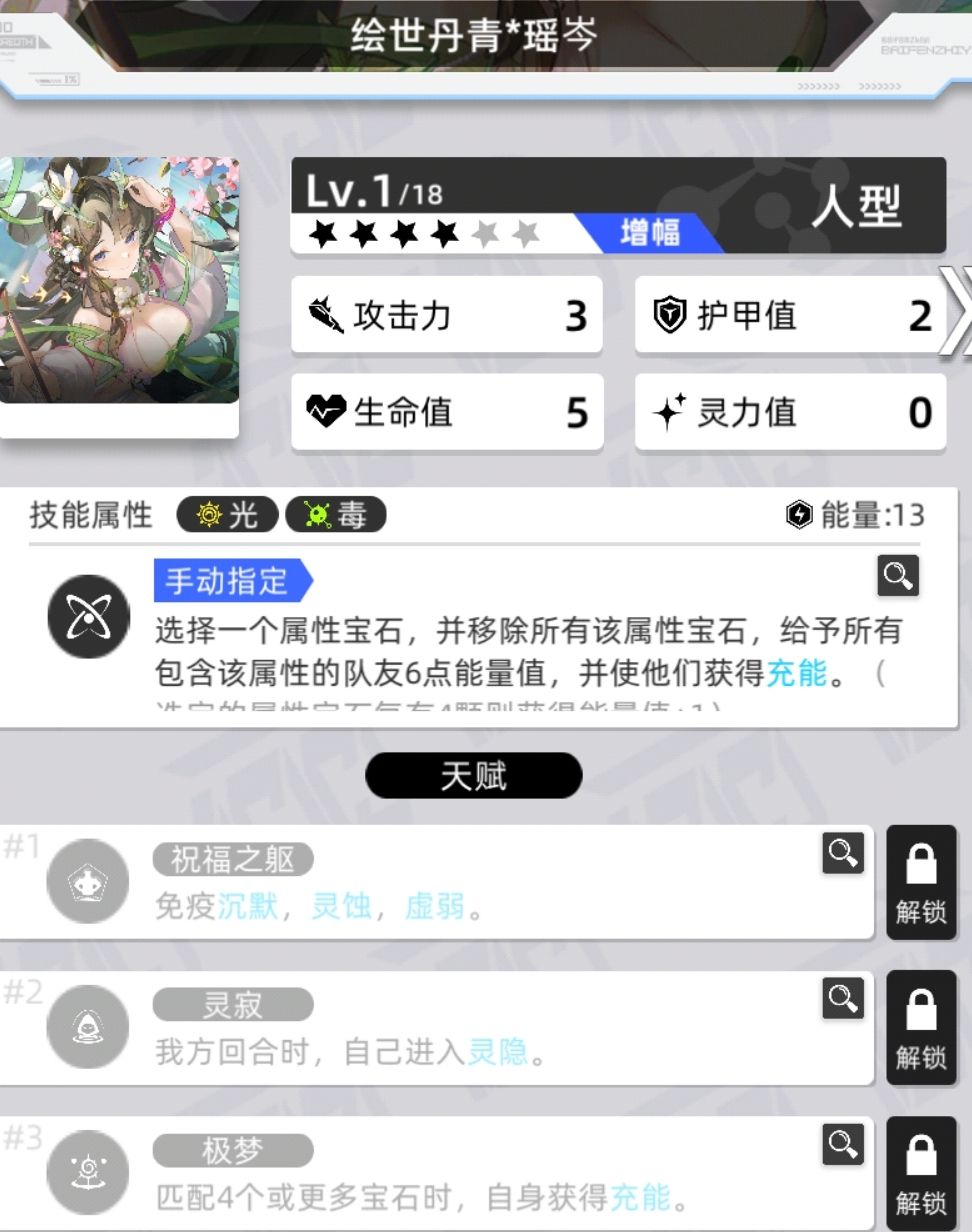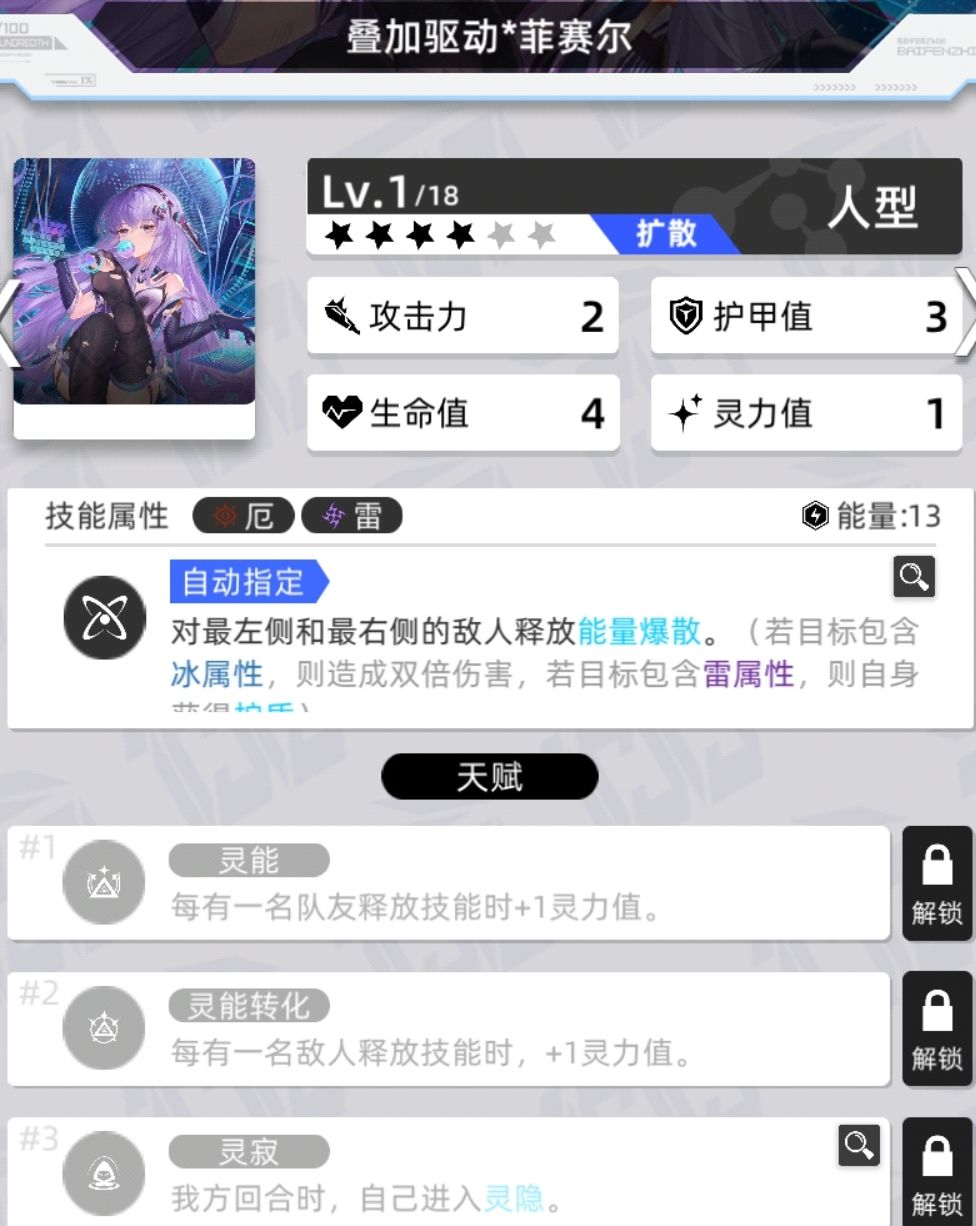拥有灵息天赋的数量为4,灵寂数量为13,还有1个特殊的四消进入灵隐状态