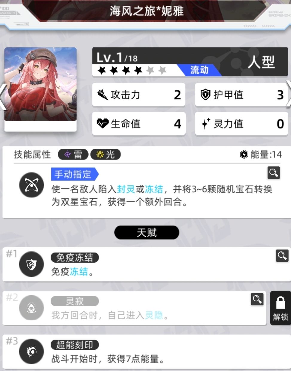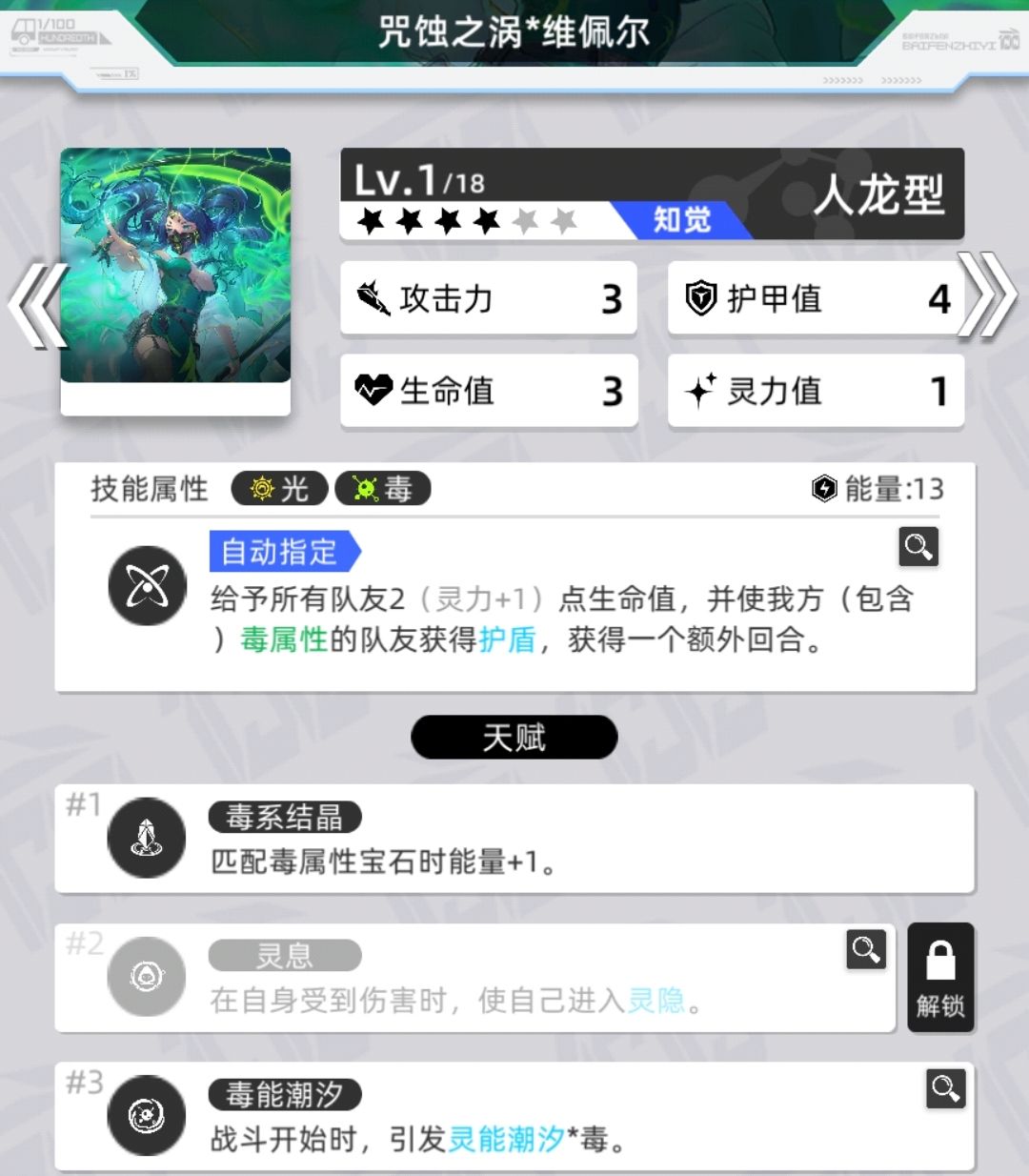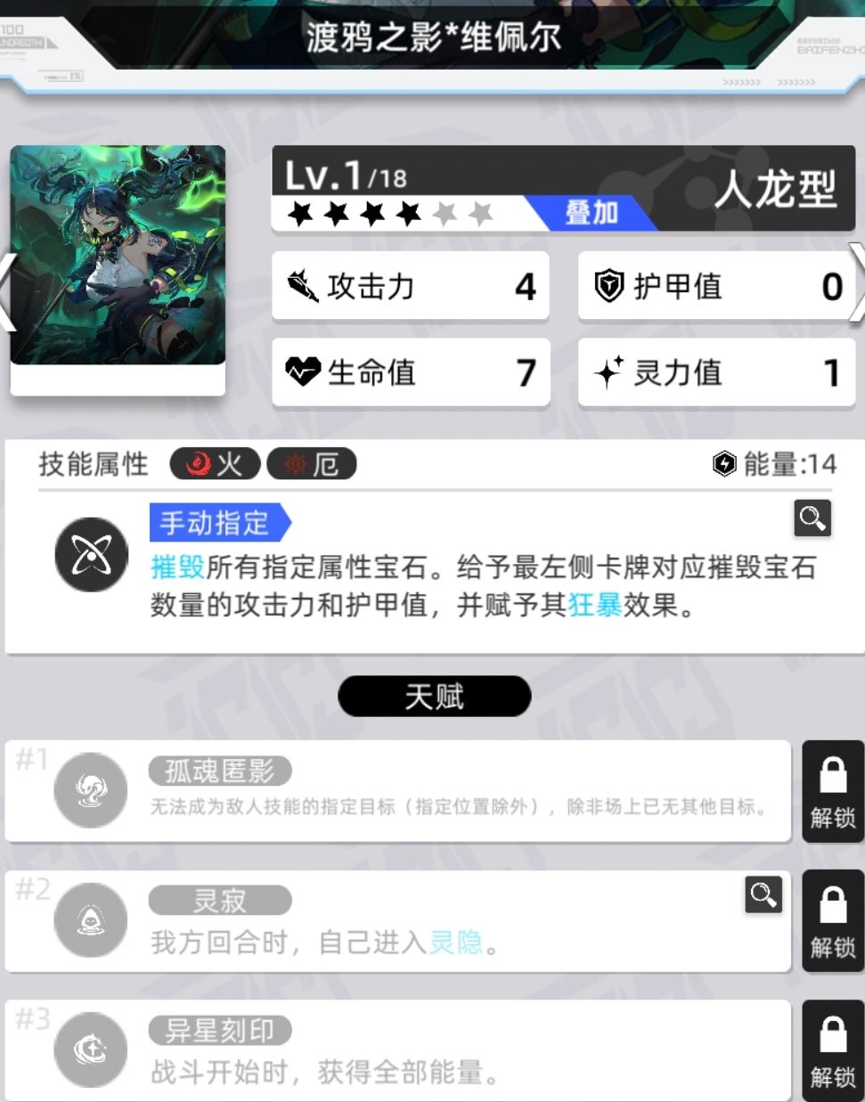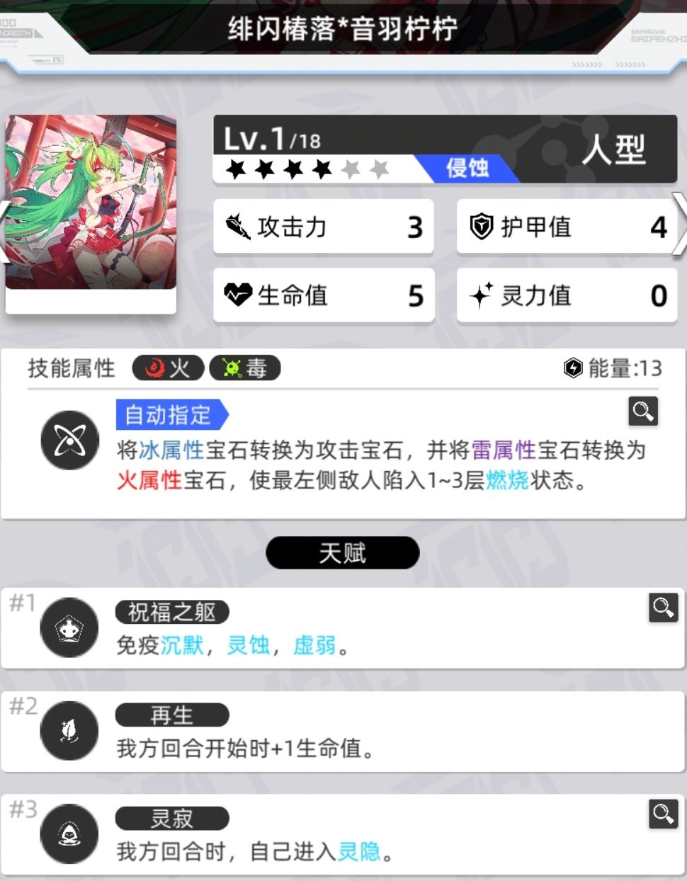 拥有灵息天赋的数量为4,灵寂数量为13,还有1个特殊的四消进入灵隐状态