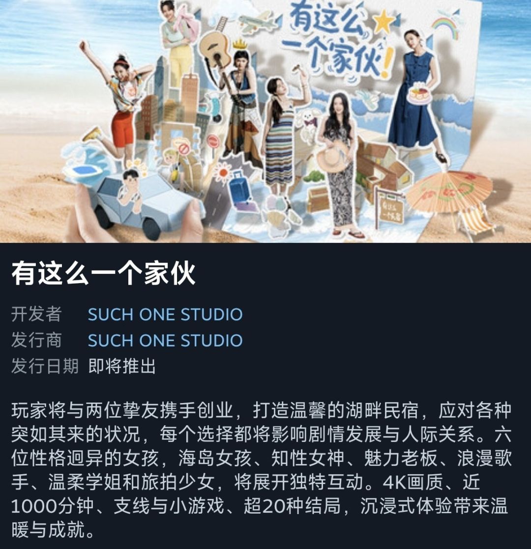 游戏以近 1000 分钟的 4K 高清视频作为主轴,配合角色好感度系统、民宿发展数值与支线事件触发机制,玩家将面对数百个抉择点,每一次选择都将影响人物命运与剧情走向。目前游戏共设计超 20 种不同的结局,支持高自由度的重玩和剧情解锁。同时,还包含支线小游戏、隐藏彩蛋、特殊演出与成就收集系统,等待玩家逐步探索。