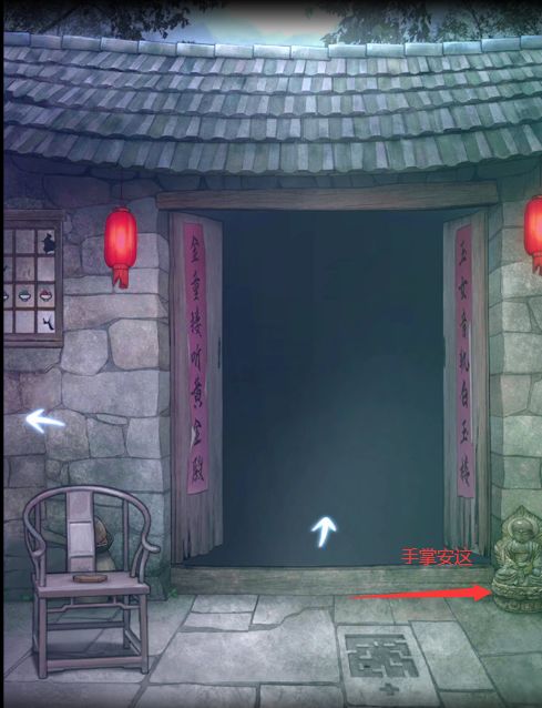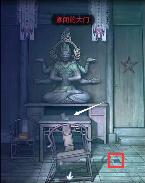 佛像前的桌上有一幅挽联,下面有特殊符号,根据符号显示可打开太师椅旁边地砖上的密码,获得五角星,