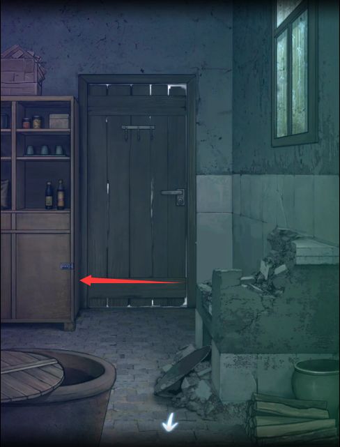 三清福地桌下有一张纸,厨房左边柜子有密码锁,设置四位数字为xyzh,通过第一组算式可知要把数字通过加减乘除算成4-4的结果才算正确,通过演算得知计算方式是(z*h)-(x+y),依此算出锁的密码是(50*20)-(50+20)=930.获得蒸馏用的桶。厨房里的水瓢和靠墙的柴火可以拾取。