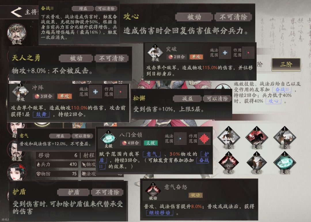八门金锁前期就能用。想当辅助装一下凡人都没机会。我看看哪个叫徐庶的匹夫说将军八门金锁阵只学到了皮毛。后期直接天人之勇,义气奋怒加冲阵,刀刀烈火砍完你不能反击,6 行动点还能跑你敢信。曹将军直接让他们这帮凡人见识一下什么叫天神下凡。