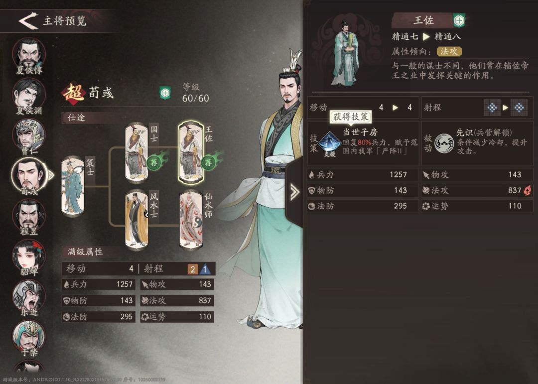 【攻略】 王佐之才—荀彧培养推荐(新手必养)