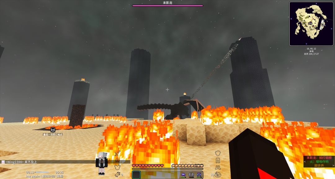 四个人去打龙,,满级合金甲,图腾,枪,弓,能上的装备全上了。打许久才磨掉三分之二的血,快到弹尽粮绝的时候,末影龙发力了,直接开启血怒无差别打击,全员叽叽