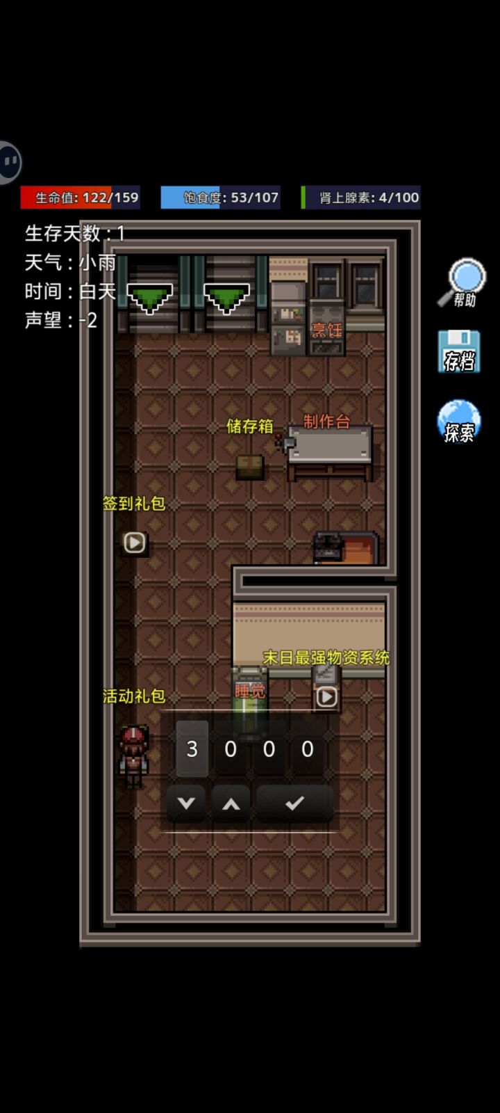 * **回血方式:** 血量低时,可以**回家睡觉**或者**点击屏幕右上角的“休息”按钮**回复生命值。