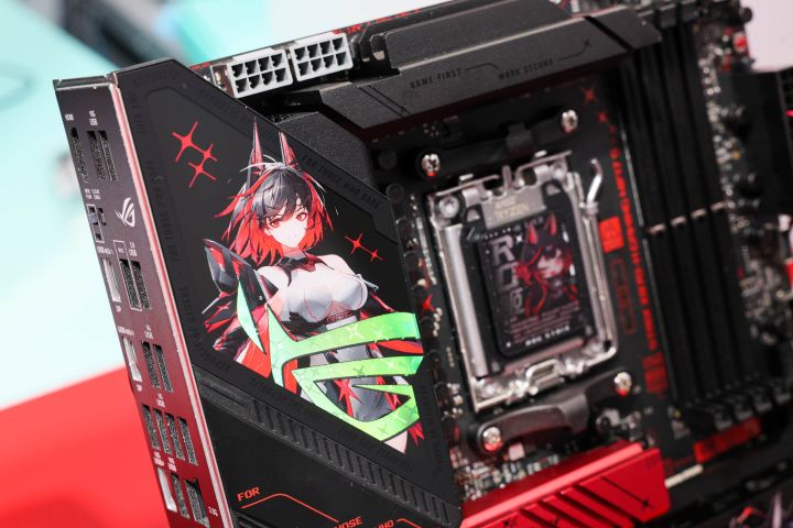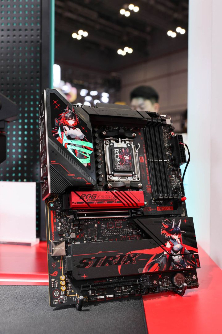 还有ROG X870 RO姬主板,从外观上看是真帅吧,黑红配色看了很舒服。此外ROG X870E RO姬×初音未来版主板将在8月31日开售。