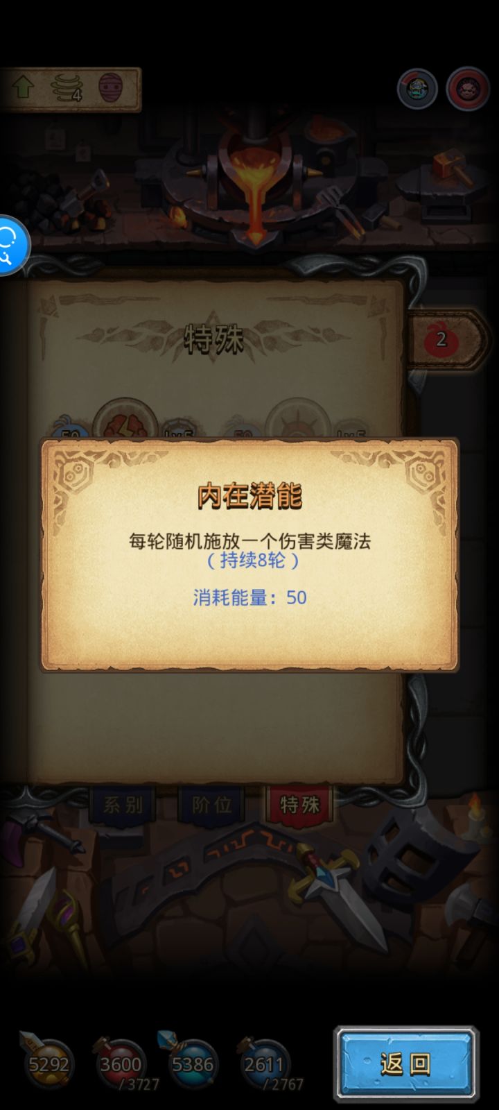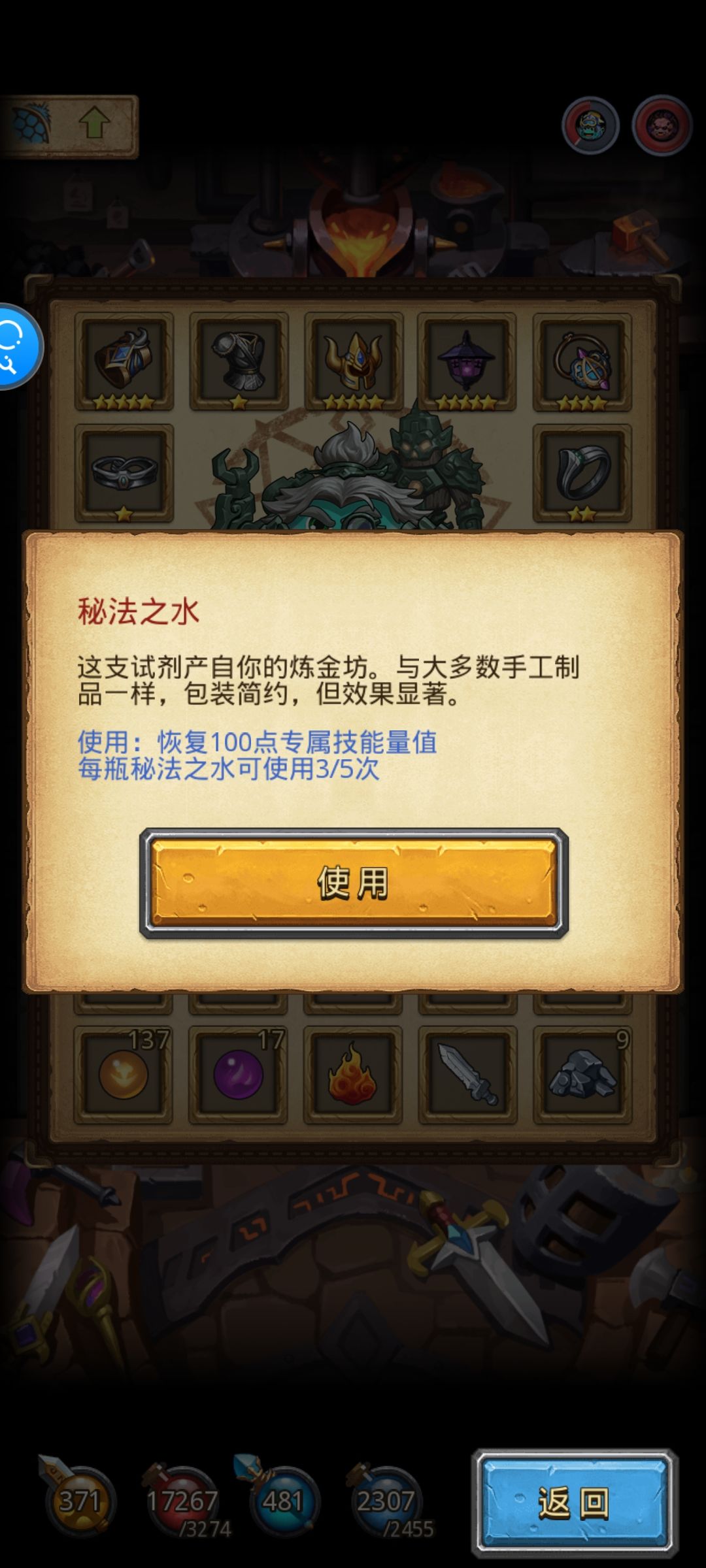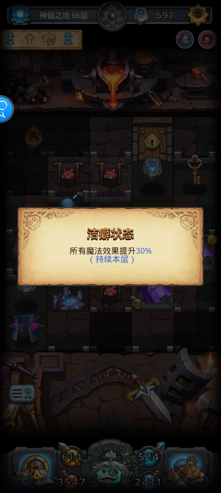 神锻之地672种组合,这次深渊的机关大师女巫隐者脑虫。秘法之水+冒险者竖琴/奥德赛+异界黑暗仲裁暗元素魔龙。隐者+女巫有330%所有魔法效果。不能放地震破坏求索,只有机关兽四肢触发了,女巫的专属技能也不会打断求索,配合脑虫每每2层清全图。高层不想空档就喝秘法之水了,喝一口可以打三层。每轮五颜六色技能自动攻击特别好看。开着自动拾取先放女巫再机关兽四肢也行,但是防止脸黑出现8轮法术都是单体+被前排3个盾牌全吃了+后面2个锤子直接秒了我。前期可以这样,就算只打死一个,暗魂也能补刀全场,高层还是保命要紧。