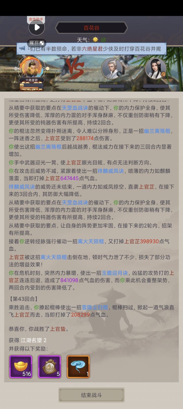 天罡铁骨棍,二阶破军套,99飞蝗,93丹田,11三花