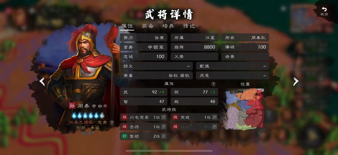 攻防(轻骑):低统率+轻骑脆皮,护主技能成自杀指令(肉度<孙权)。仅水域加成下堪用。