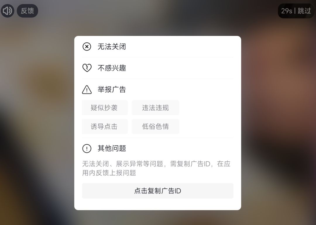 - 实在不爽这种广告可以右上角点 [反馈] 举报广告, 或者复制广告 ID 发给我, 我去屏蔽掉.