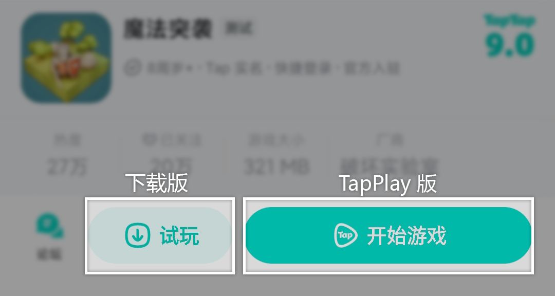 - TapTap 上目前提供两个版本, 一个是免安装的 TapPlay 版, 一个是需下载安装的 (显示为试玩按钮). 两者内容一致.