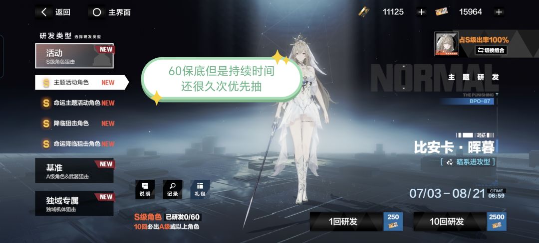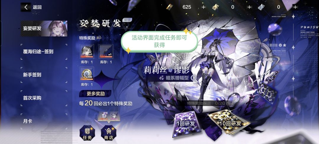 另外活动界面里还有一位完成任务即可获得的暗系角色可与当期up比安卡·晖暮组暗队