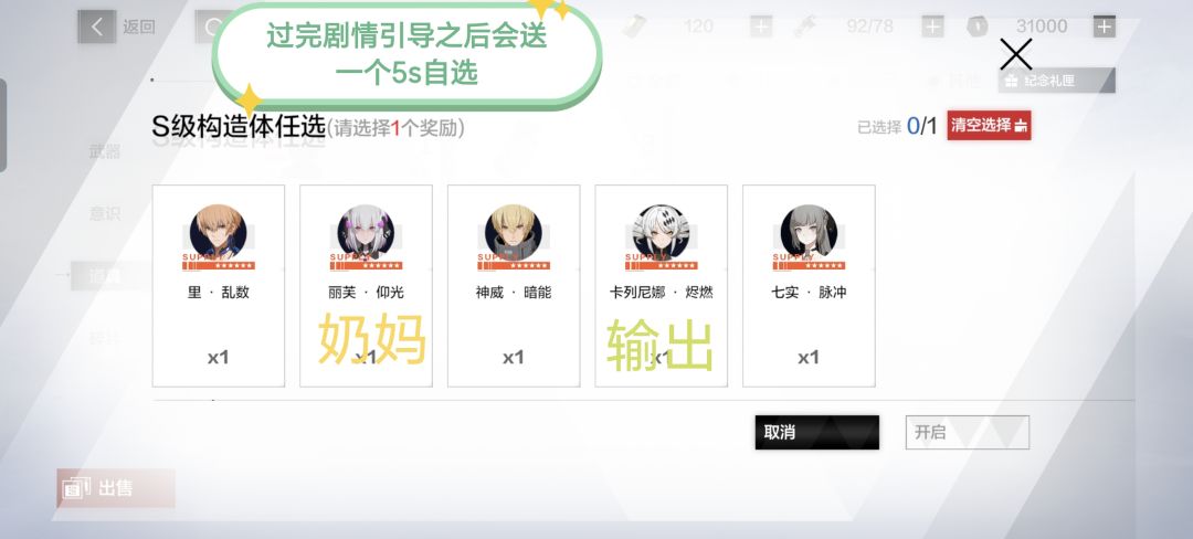 首先我们战双开服第一天资源先留好可以跟着我的新手前期思路来,我们过完新手教程之后会获得一个5s自选礼包这里选谁都可以,看自己喜欢哪个,都没什么强度,不过要比初始角色要好,如果选择输出的话可以在第一章第二章加快一点推进剧情速度,