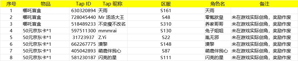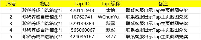请上述Tap渠道获奖者在此帖评论区留下自己的【区服信息】+【角色名】,需要附截图tap主页截图;