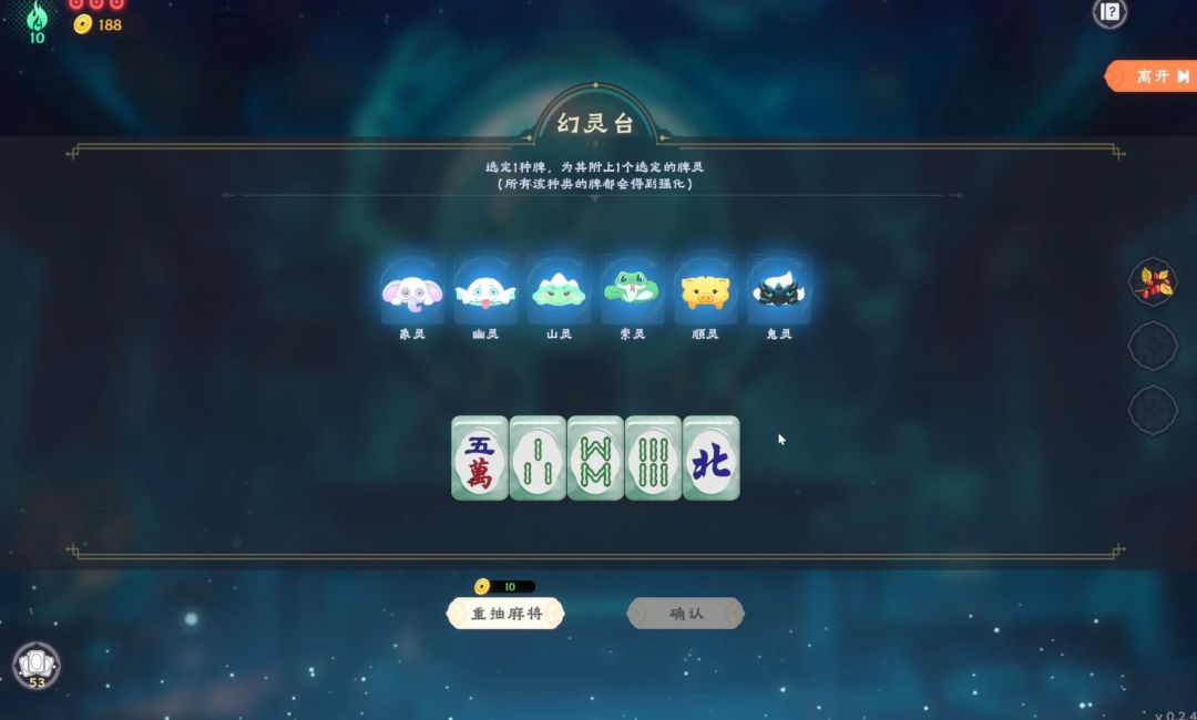 有着这样独特而胡闹的规则,《我地麻》的玩法,其实是通过路线上选择不同的构筑(作弊手段),将某张手牌附魔,变成“你想要”的牌。比如幻灵台这里,就可以给牌库中的一类牌附魔万灵,让它变成万牌。