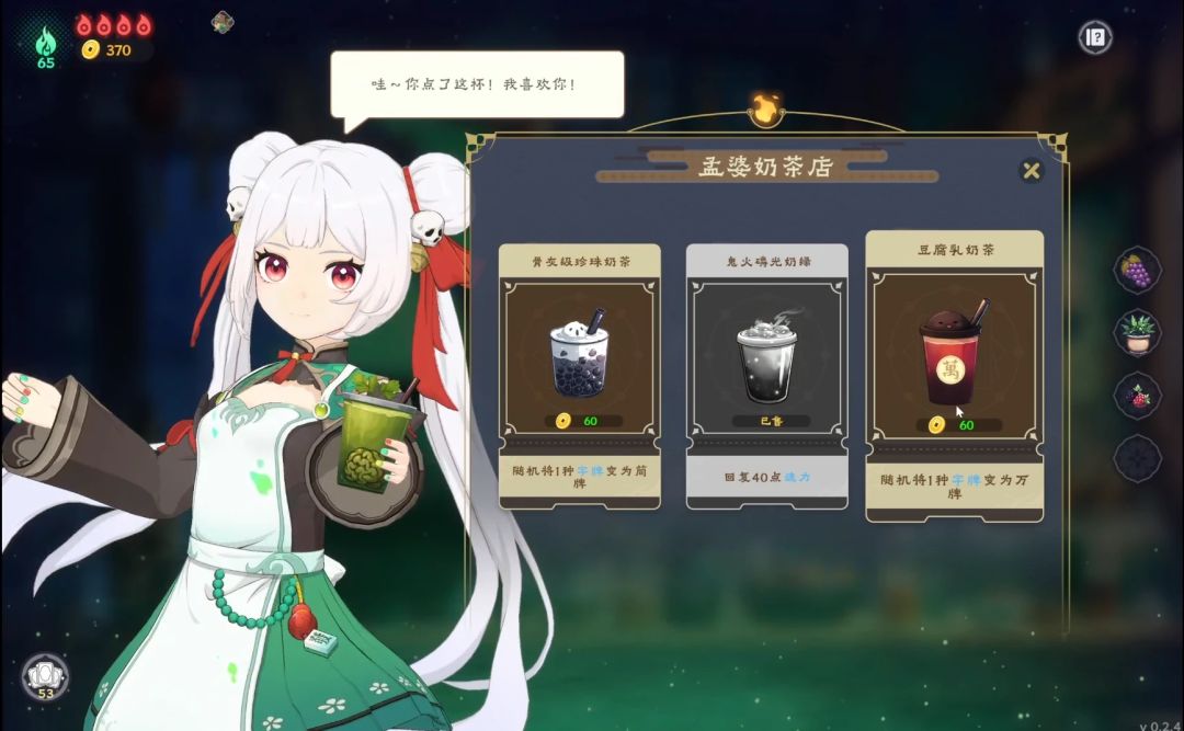 游戏内的商店,也相当有梗,孟婆在游戏里不仅可以作为选手或者对手。在地府开的“孟婆奶茶店”,还将售卖具备各种效果的孟婆奶茶,来进一步协助玩家牌组的构筑。