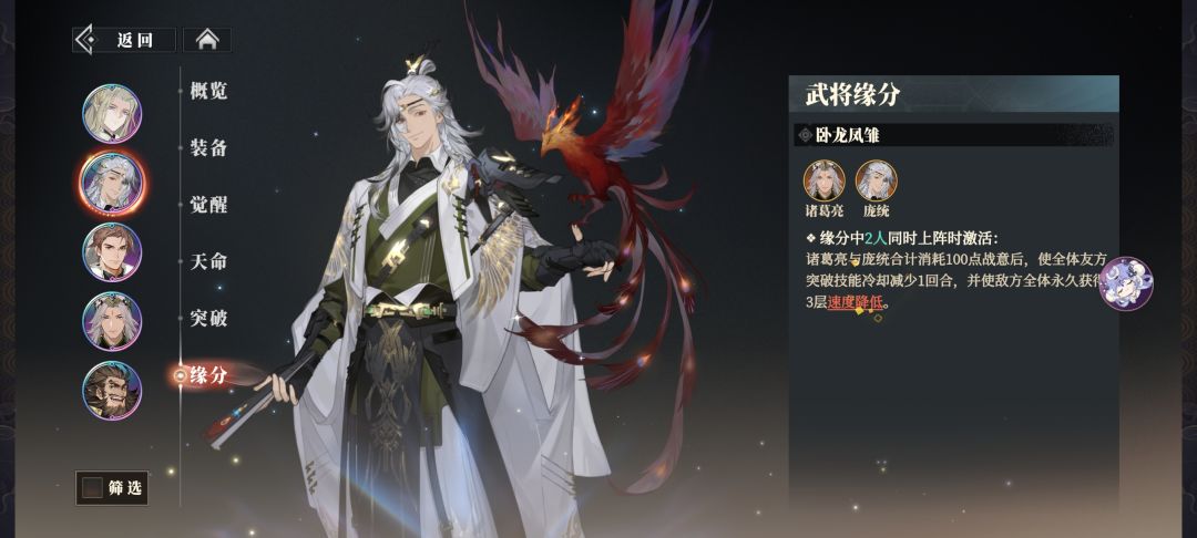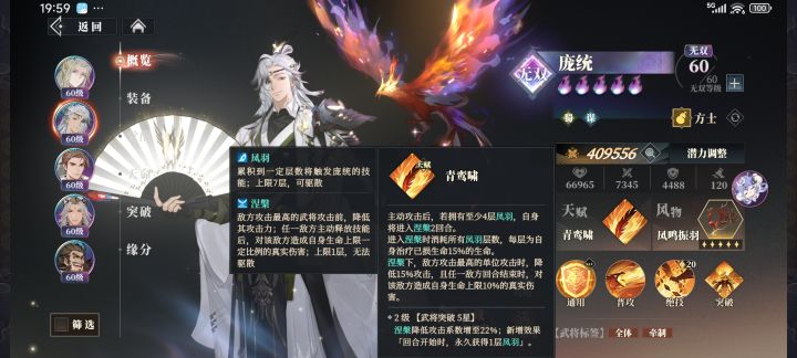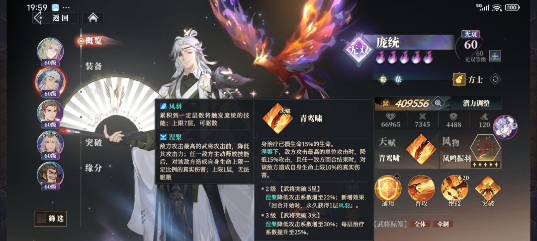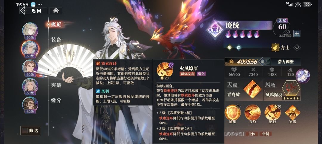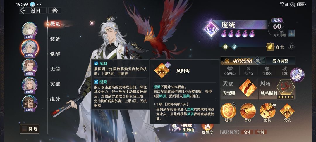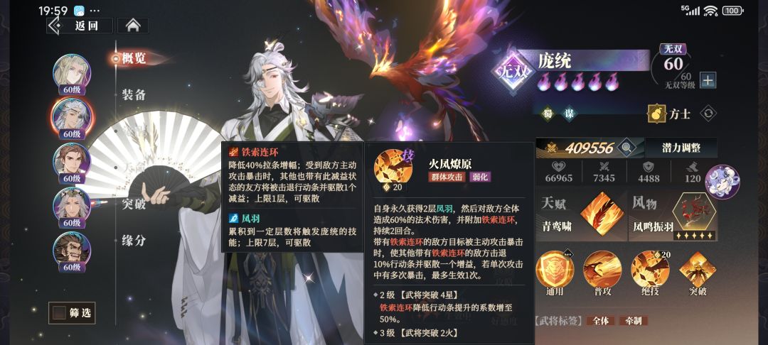 然后就是他的核心机制凤羽,涅槃,铁索连环