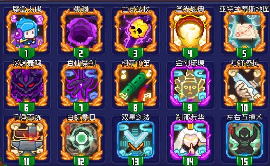 6、1011位刀锤:额外武器伤害和攻速加成,最经济的组合,星级要求不高,其实大佬很多都放刹那双星,速推肯定比刀锤快,但是容易暴毙,就算满cd也有1秒左右的真空期,还是有可能暴毙的,红印天使不能重新激活,基本上暴毙后就废了。还有带剑意套的,个人觉得三张卡有点占格子,打得快有时候11张卡就结束了。