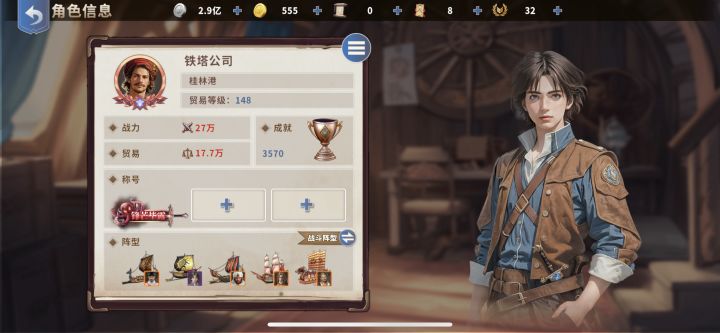 14.前期装备普遍10级够用,贸易船只要魅力,单次贸易50w后可以把卢克的船装备拉20级;