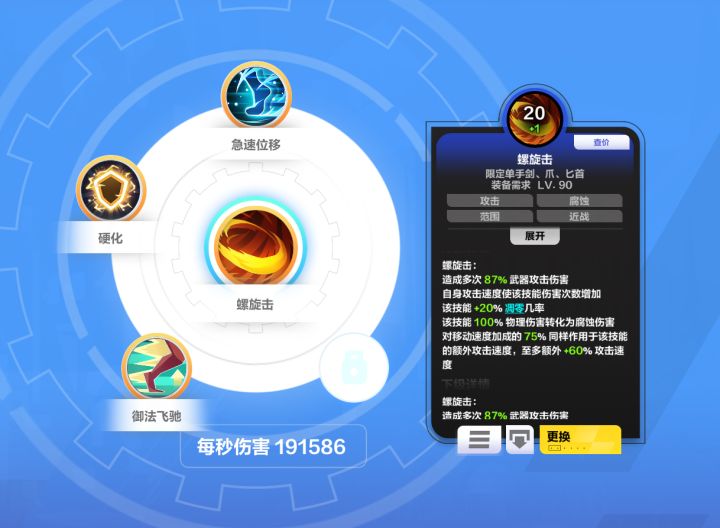 给螺旋击连个御法飞驰会好很多,目测螺旋击的频次加成一大半被砍到了移速上,攻速的倍率游戏里没写,但绝对砍烂了,怎么堆攻速都感觉不到效果,随便加点移速频次立刻大提升。