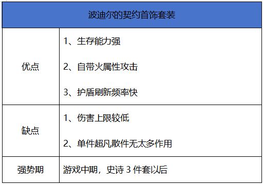 波迪尔首饰的单件属性并不是伤害上的增益,而是对生命值和属性抗性进行了提升,进一步放大了波迪尔首饰的生存定位