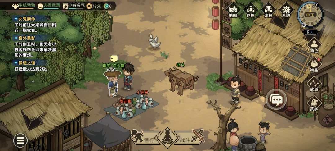 无名地区-无名小村-药铺-[人物:郎中·白头翁];记得白天去,晚上村民都会回家。