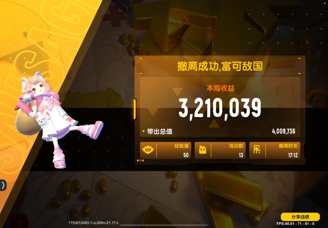 自从龙王秘境更新以来,普通图的爆率也变得很高,更别说困难了,每一局都是保底150万撤离;