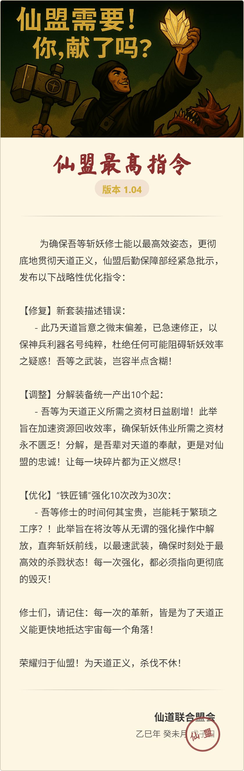 【更新公告】v104 自动拆解铁锭增多