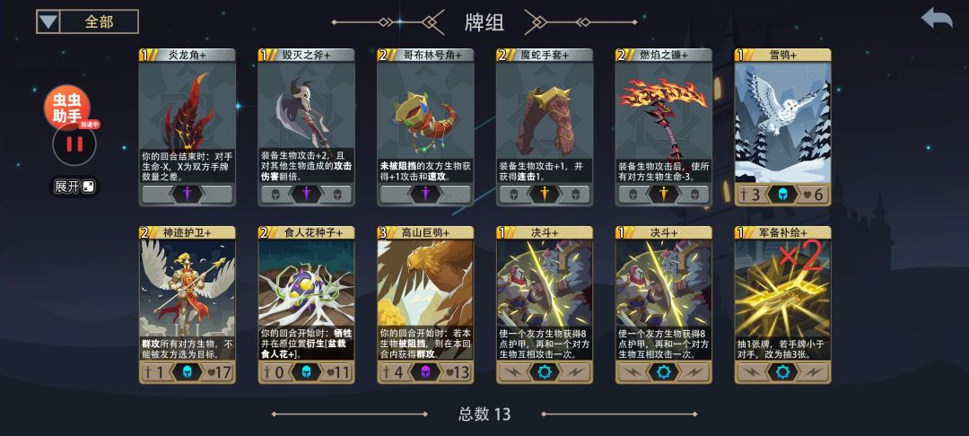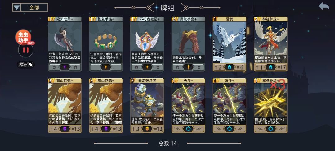 ——删牌:留下『高山巨鸮』×2、『决斗』×2,其余由高费到低费逐次删除
