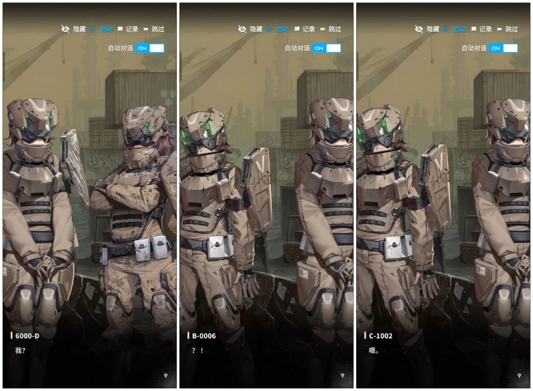 说人话就是这个工厂里的妮姬和莱彻都是被这个捍卫者复制粘贴出来的,所以只会机械化地执行被复制那一刻的命令,这时由c1002发出了一个疑问,