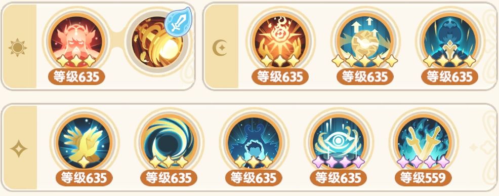 2,羁绊:红蓝绿035→335→535→555(注意红5和蓝5需要满足属性要求才能吃满增伤)
