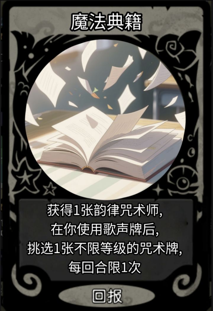 获得1张韵律咒术师,在你使用咒术牌后,挑选一张不限等级的咒术牌,每回合限1次。