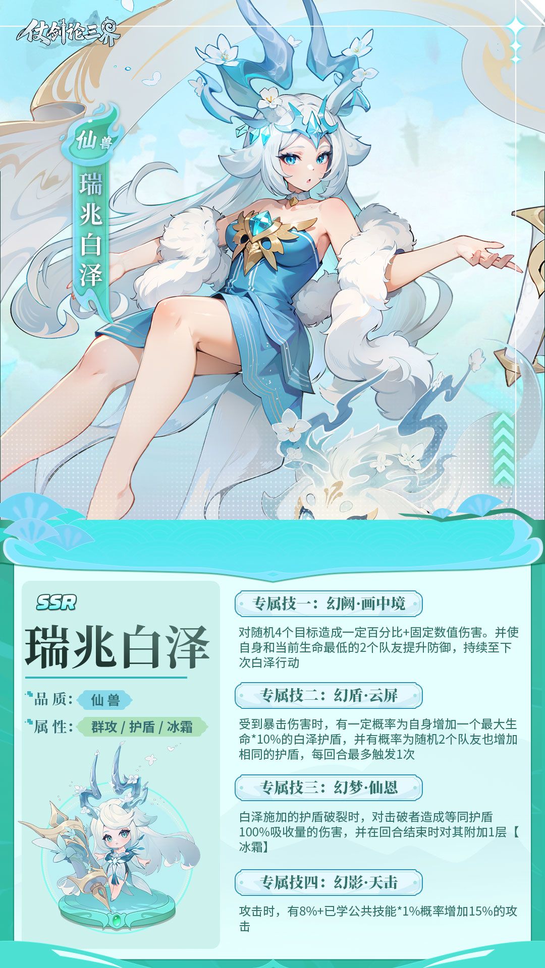 昆仑玉墟,瑞兽白泽。其形似雪狮而龙角生辉,通体皎若霜华,眸含周天星斗。