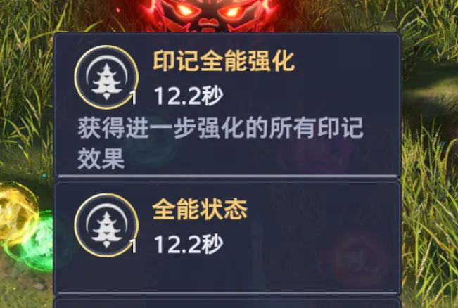 最后我们则来看宁荣荣的被动技能,其概率的意思就是集齐6个印记后就能召唤神龙了......咳咳,就能激活“全能状态”了,此时所有6个印记都会被提升为2级印记,且刷新2分钟的持续时间,而全能状态结束后,所有印记也会被消除,同时全能状态持续期间我们也无法获得印记,毕竟都已经全是2级印记,还获得啥......