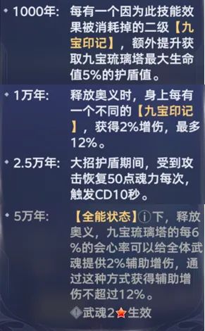 - 2.5万年魂环+黄色5星:额外获得1层随机的九宝印记,并且随机升级1层“九宝印记”