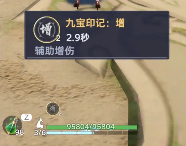 同时这些光环效果却不是一直持续20秒的,经过实测,每一层触发的九宝光环效果只能持续2秒,同时间隔触发cd为3秒,所以理论上基础20秒的光环时间内,只会触发4次九宝光环效果,一共持续时间为8秒,只能占光环总持续时间的40%,效果着实有点尴尬......