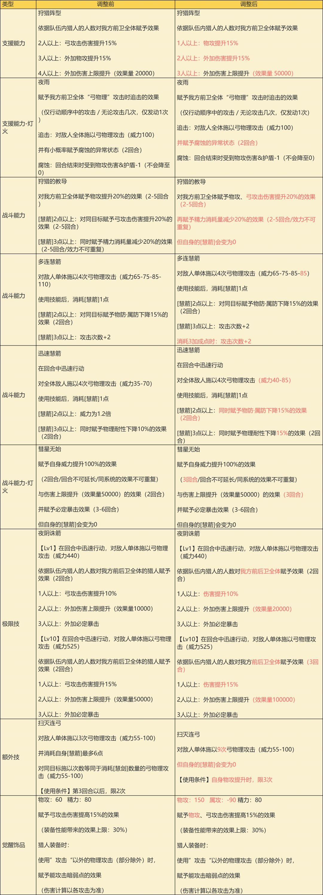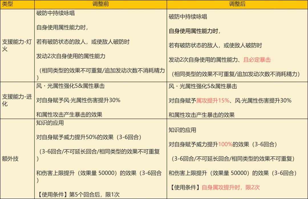 对本期圣炎的英杰“奥黛特”进行了性能调整,详情如下: