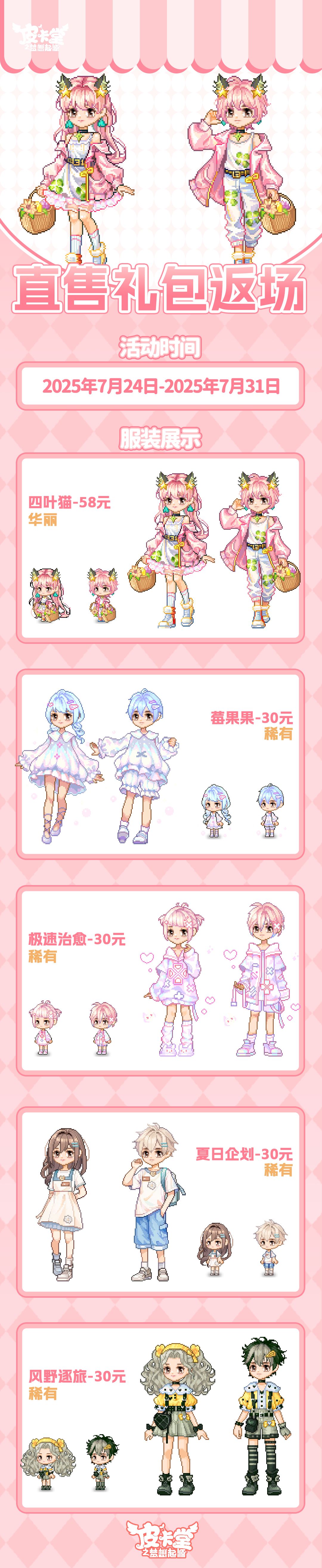-【直售礼包】华丽套装「四叶猫」、稀有套装「莓果果」、稀有套装「极速治愈」、稀有套装「风野逐旅」、稀有套装「夏日企划」限时返场!